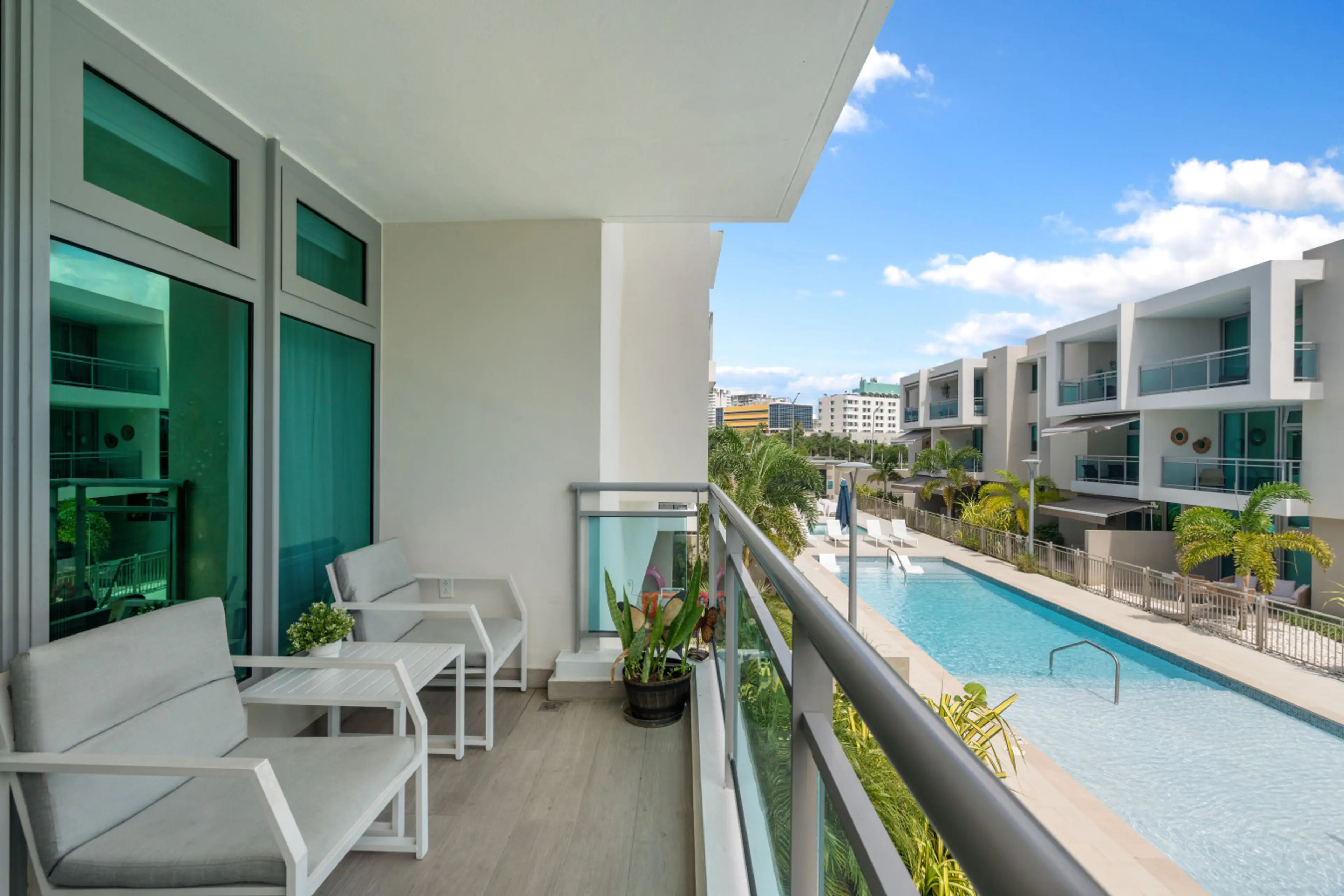 Keep it simple at this peaceful and centrally-located 2-bedroom apartment, with a pool, just 4 minutes from SJU Airport, 2 minutes from Isla Verde Beach, and 7 minutes from Old San Juan. This is a second-floor walk-up apartment with a balcony overlooking the pool. Relax in this calm, stylish space...